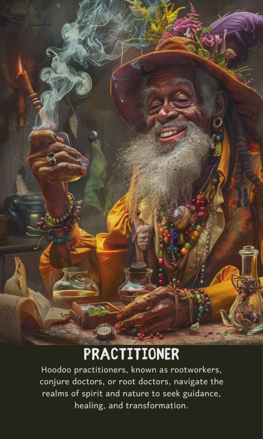 Rooted In Hoodoo is a seventy-card divination deck inspired by the sacred spiritual traditions preserved by enslaved African Americans—traditions shaped by Central and West African lineage, sustained through resilience, prayer, land, and ancestral authority.